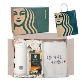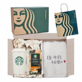 스타벅스 SS 우디 하우스 텀블러 + 오수 영신 타올 호텔 수건 선물세트 + 비아커피