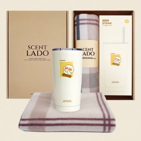 센트라도 패턴 담요+카카오 춘식이빨대스텐 텀블러 세트